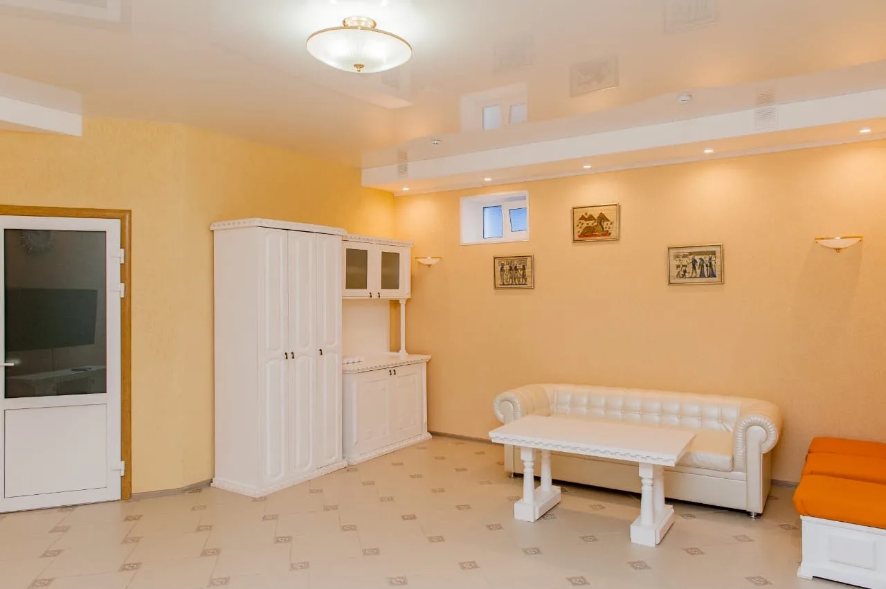 Семейная баня "Юг" включает в себя: зал отдыха, парную на дровах, бассейн, душевые, комнату отдыха, санузел, телевизор.